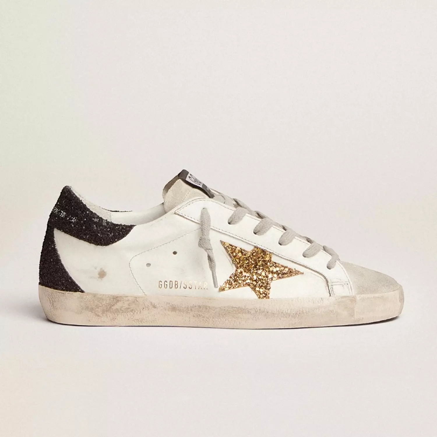 Golden Goose Super-Star With Burgundy Glitter Star And Silver